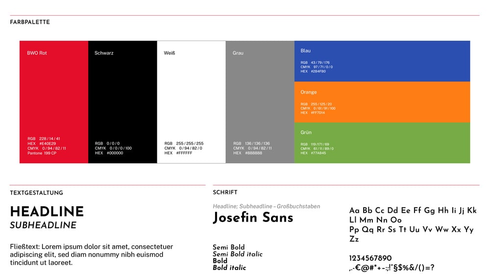 Die bisherige Markenkommunikation von BWO war geprägt durch ein Gestaltungelement mit mehreren abgewinkelten Streifen in unterschiedlicher Länge. Diese Idee haben wir aufgenommen und weiterentwickelt. Entstanden sind dynamisch-kraftvolle Gestaltungselemente mit einem prägnanten Farbverlauf, die die Innovationskraft der Marke unterstreichen. Sie finden Einsatz in nahezu allen Kontexten der Markenkommunikation.
