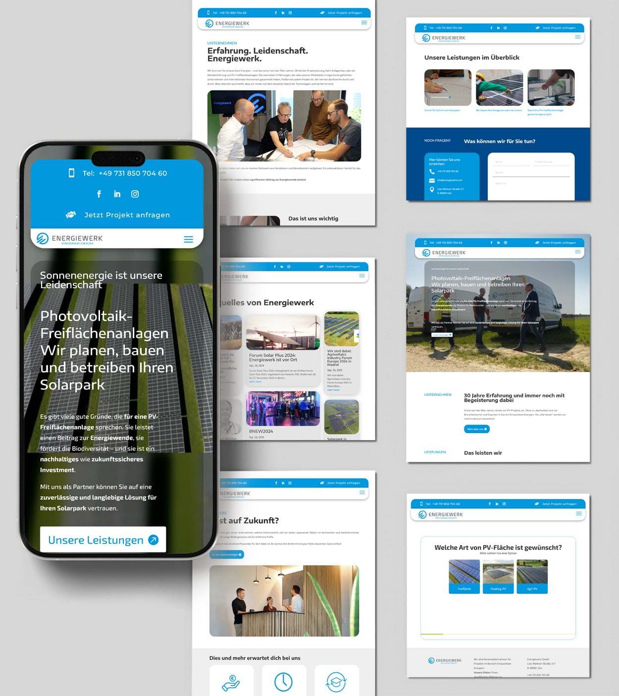 Mit der neuen Corporate Website erhält die Energiewerk GmbH einen modernen, nutzerfreundlichen Auftritt, der Vertrieb und Personalgewinnung gleichermaßen stärkt. Klare Strukturen, ansprechendes Design und ein Lead-Funnel sorgen für eine optimale Präsentation der Leistungen und Projekte. Gleichzeitig überzeugt eine professionelle Karriereseite mit einfacher Online-Bewerbung potenzielle Fachkräfte. Das Ergebnis: Ein digitaler Auftritt, der Wachstum, Erfahrung und Zukunftsorientierung des Unternehmens wirkungsvoll transportiert.